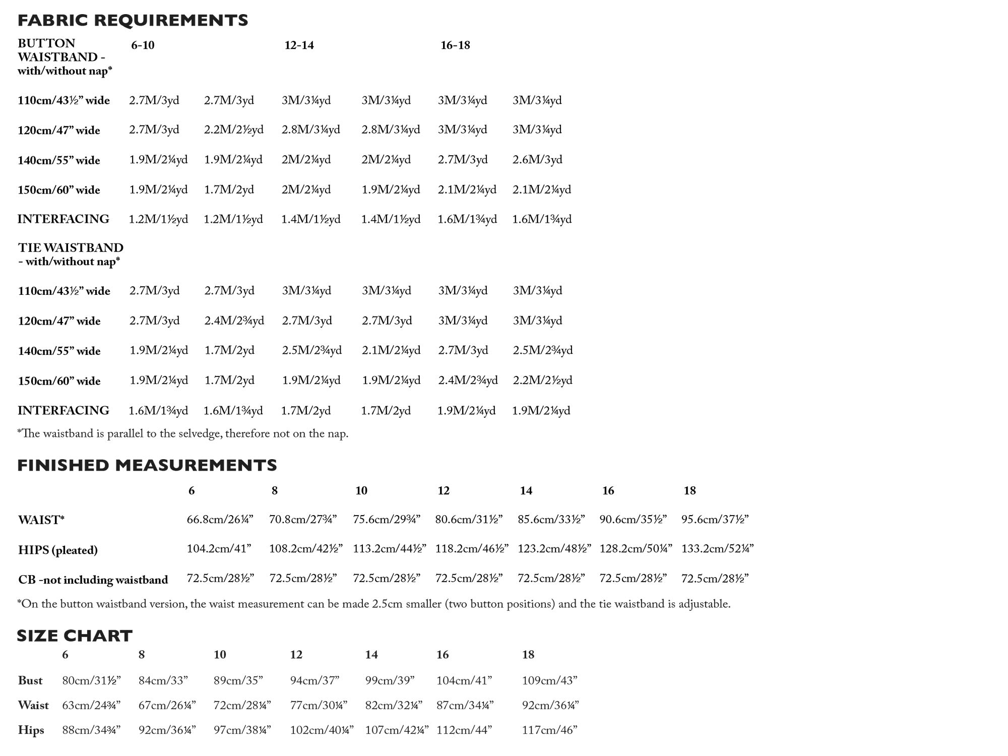 Skill level: Tie waist - advanced beginner; Button waistband - intermediate.